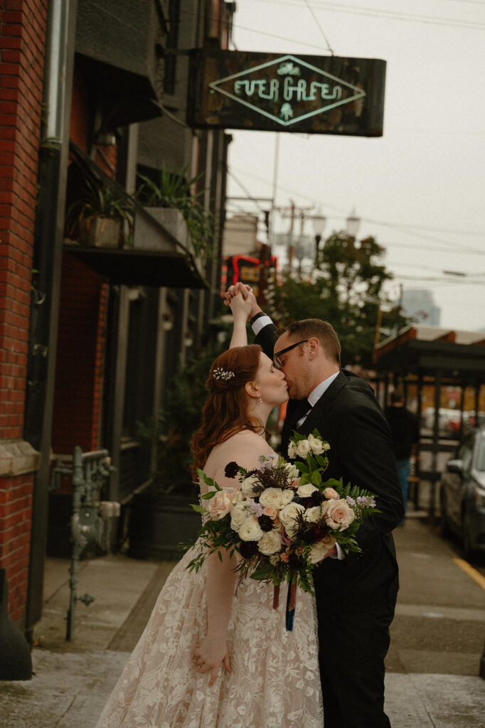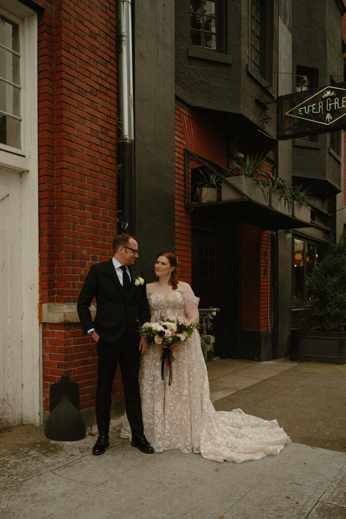 Back to the city we go for the last (but not least) on this list of best wedding venues near Portland! The Evergreen is located in East Portland, not far from the Eastbank! It has a bit of an industrial feel to it, but is still warm and inviting with exposed brick and white walls that allow for a blank canvas to make your vision come to life. The most unique part of this venue is the hidden speakeasy that is entirely private for couple’s photos! There’s also access to the bar next door for cocktail hour while the venue flips the ceremony space for your reception. It’s one of the most versatile venues with such a variety in options for photos!